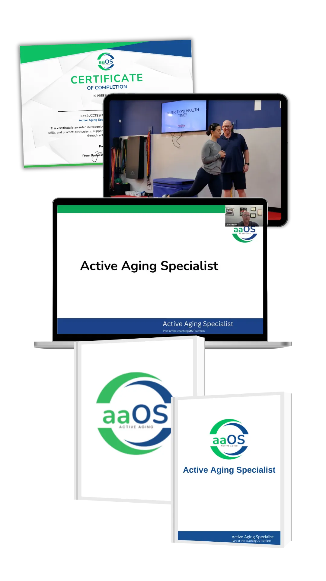 The ActiveAgingOS certification gives you the tools, confidence, and expert credibility to help older adults thrive.